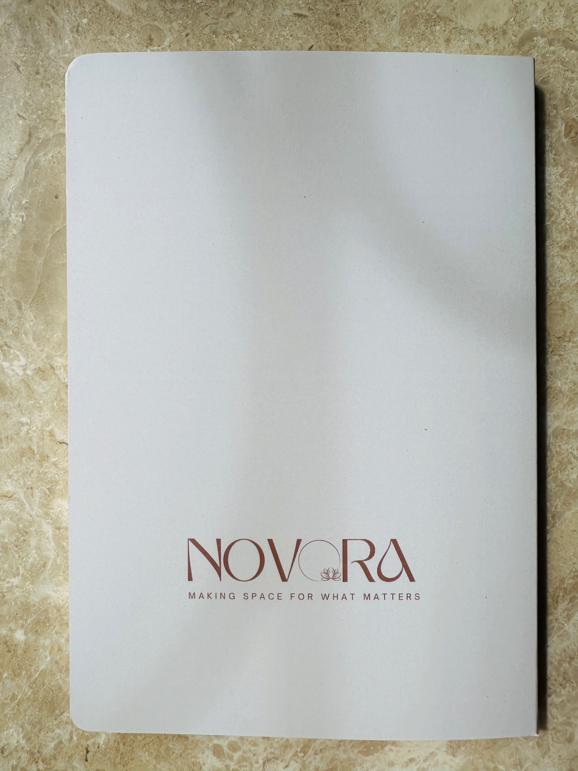 A notebook designed for calm and clarity, with clean lines, minimal design, and soft aesthetics that make space for your thoughts to flow freely. Perfect for journaling, note-taking, planning your days, or penning down your ideas and manifestations, it’s your everyday companion for mindful writing.